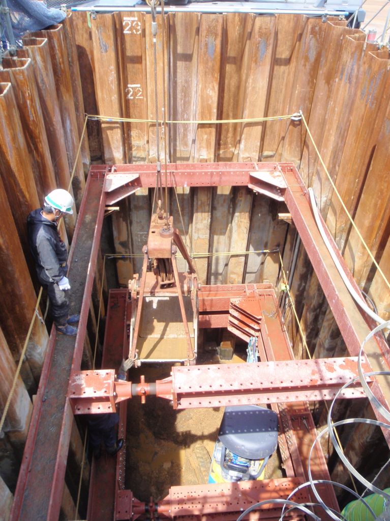 地面を深く掘る工事では、土が崩れないように「土留め」が必要です。